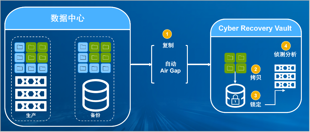 米兰(中国)AC米兰防勒索病毒方案将生产中心备份数据复制到Vault区,复制后网络自动断开实现弹性隔离。Vault区的数据快速拷贝,并对拷贝版本加锁(在锁定期数据不允许删除和修改)。Vault沙箱内对拷贝版本进行扫描分析,验证数据是否完好。